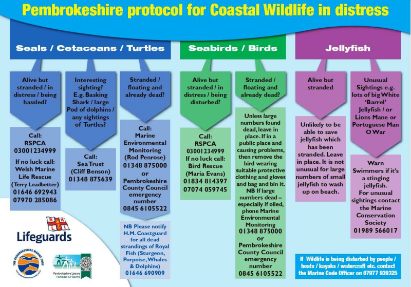 DOLPHINS Dolphins are not often seen in the immediate inshore area around the peninsula. Bottlenose Dolphins are the usual inshore species around the UK and they are not common here, though there are regular pods further up the coast in Cardigan Bay. Common Dolphins, which are smaller than Bottlenose Dolphins, and tend to travel in big pods, are frequently seen on boat trips out to the Smalls and Grassholm - a large pod heading towards the boat at high speed is a very dramatic sight! However, they are not often seen from the land.