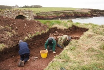 The Cemetery is on a small flat piece of land next the lime-kiln and just above the beach. Fragments of coffins can sometimes be seen in the low cliff behind the beach. It has recently been excavated but the results seemed only to provide more questions than answers!