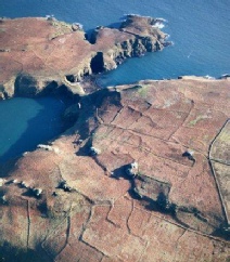 THE DEER PARK This is the headland at the end of the Marloes Peninsula just beyond the little cove of Martins Haven. So called because of past plans to keep deer there (never fulfilled, though the wall to keep them in was built), the Deer Park now provides a short circular walk with unrivalled coastal views. To the south there is Skokholm. To the north, views across St Brides bay to Ramsey and St Davids, with Grassholm and the Smalls Lighthouse far out to sea. To the west the looming presence of Skomer, with Midland Isle in the foreground. Between Midland Isle and the Deer Park runs Jack Sound, a formidable shallow tidal channel with a tidal race at the down-tide end, which can none-the- less be navigated by a small boat when the tides are right