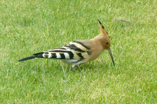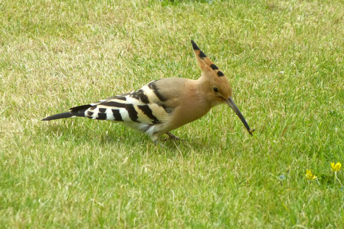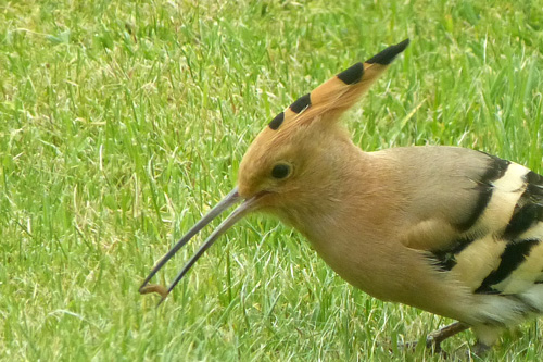 There has been a hoopoe, or possibly two hoopoes, in Marloes from April 11th to 15th, delighting householders and the increasing small band of bird-watchers keen to get a glimpse. The bird(s) avidly probed in short grass and appeared to be eating ant pupae.